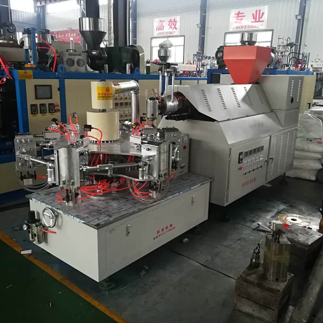 本机型主要适用于PP、PE原料的塑料制品。如:果奶瓶、农药瓶、医药瓶、化妆品瓶、密封胶筒、84消毒液等中空塑料制品。是800毫升以下小型塑料瓶的较好选择。本机组采用螺杆挤出机吹塑工艺,采用自动温控变频调速。设备高效节能,本机可装自动拉尾装置,自动换网装置,还可配自动削口设备。